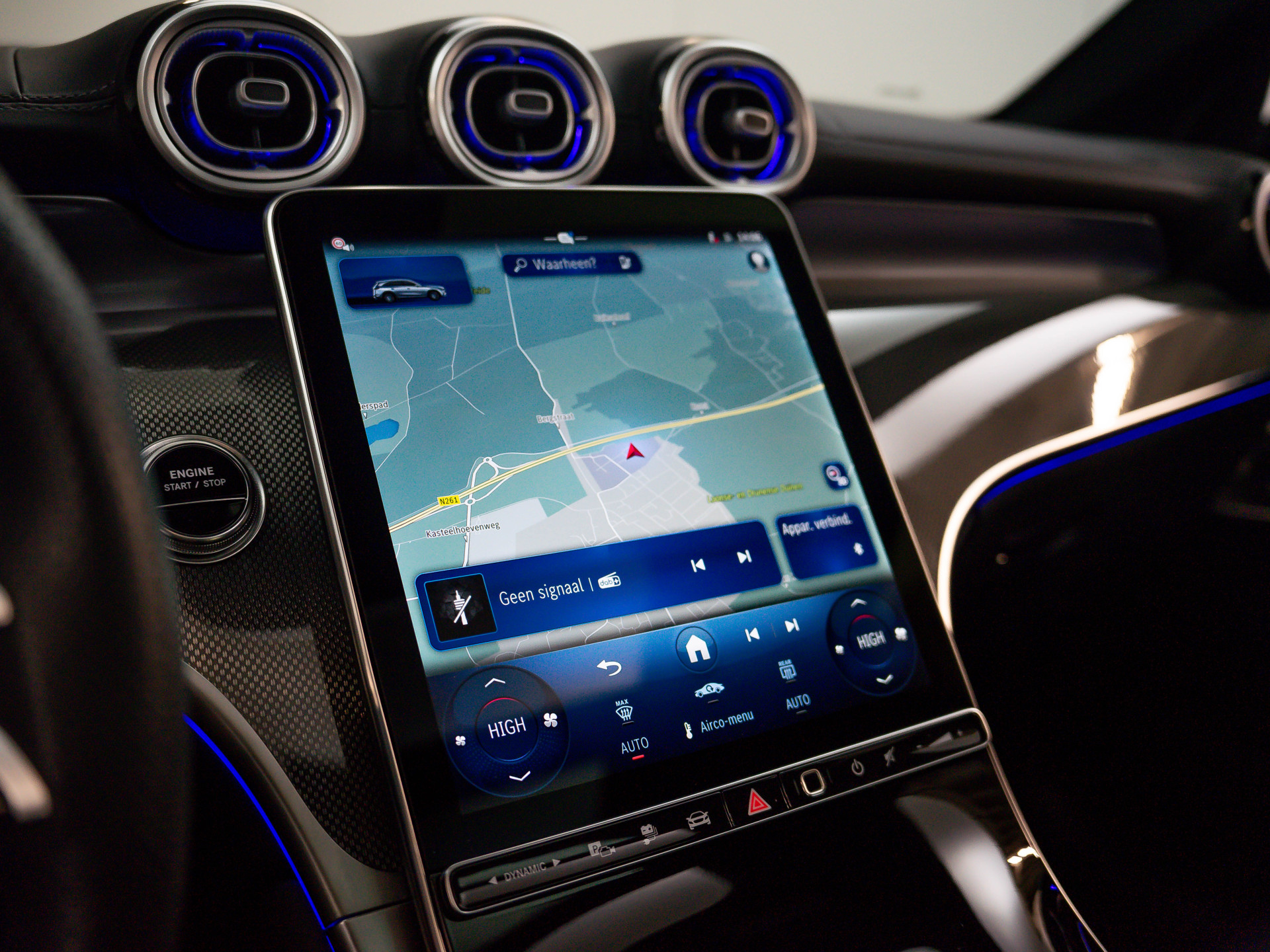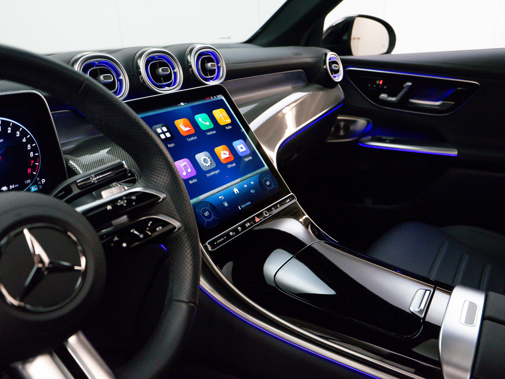 MBUX Multimediasysteem Premium met groot centraal display, navigatie, Apple CarPlay/Android Auto, draadloos opladen etc.